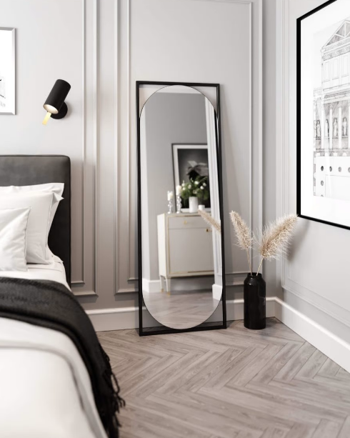 Дизайнерское настенное напольное зеркало Glass Memory Lustrous в металлической раме черного цвета в Назрани